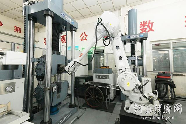 为提高螺纹钢质量检测精度,确保高质量,敬业集团引进螺纹钢全自动一拖二拉伸机试验机器人。“只需轻点启动程序,机器人的白色机械臂就能精准识别、自动测量、精准刻线、智能拉伸等螺纹钢质量全流程检测,检测数据实时上传到系统,检测效率提升1倍,精度提高0.5%。”敬业集团本部计量质检部部长曹建虎介绍。